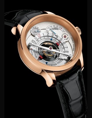For this beautiful watch housed in a red gold case, Robert Greubel and Stephen Forsey have chosen to use the possibilities unexplored rotating the cage to get the best balance of the movement: they have focused this time on the big speed of a single tilted cage, able of performing a complete rotation in 24 seconds.