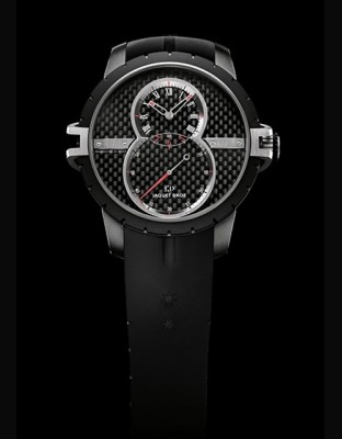 Black, pair and win! For this sports watch, Jaquet Droz has relied on both its traditional double dial hours / minutes and seconds as well as auniform black color. PVD steel case, dial, hands, rubber strap, everything is an impressive black ink and gives this watch an unusual face very special.
