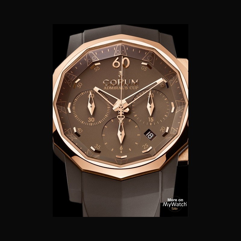 | More characteristics : | Movement CO753. Self-winding chronograph. COSC certified 13 ¼’’’ Frequency: 4 Hz. 28.800 vibrations/hour 27 jewels 5N red gold-plated rotor Power reserve of 48 hours Case Vulcanized rubber Bezel material: 5N 18kt red gold Crown protector material: Vulcanized rubber Crown material: 5N 18kt red gold Engraved CORUM key Pushers: 5N 18kt red gold Sapphire crystal with anti-reflective treatment Open back cover in titanium grade 5 with glare proof saphire crystal Back finishes: Black PVD treatment Distinctive features: Date corrector at 10 o'clock Dial Hourly nautical pennants transferred on the flange Minute-circle indexes transferred on the flange Inscribed 'Admiral's Cup' transferred on the dial 5N red gold-coated CORUM logo applied on the dial Applied 5N red gold-coated hour indexes Hands Hour and minute: Dauphine-variant. 5N red gold-coated. Skeleton Small second: Dauphine. 5N red gold-coated. Skeleton Chronograph: Baton with CORUM key. 5N red gold-coated 12 hours counter: Dauphine. Faceted. 5N red gold-coated. Skeleton 30 minutes counter: Dauphine. Faceted.5N red gold-coated. Skeleton Strap Vulcanized rubber Colours: Brown Bracelet distinctive features: With insert Interhorn/Buckle: 22/20 mm Buckle material: 5N 18kt red gold Buckle distinctive Engraved CORUM logo |