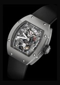 | More characteristics : | Gray PVD carbon nanofiber movement plate Balance wheel with variable inertia Fast rotating barrel Barrel pawl with progressive recoil Antimagnetic barre shaft Ceramic endstone for the tourbillon cage Number of jewels: 23 Balance: GLUCYDUR. 2 arms. 20 setting screws Inertia moment : 10 mg/cm2 Angle of lift : 53º Frequency : 21.600 vph (3 Hz) Balance spring : ELINVAR by NIVAROX Torque indicator with reference measurement in dNmm Shock protection : KIF ELASTOR KE 160 B28 Stone setting in white gold Power reserve : 70 hours |