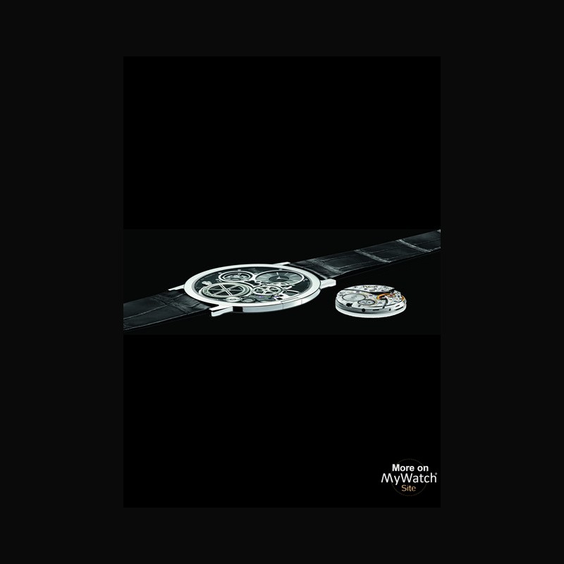 | + More characteristics : | Movement World’s thinnest mechanical hand-wound watch Thickness: 2.0mm (case + movement) 0.2mm thick crystal Development time: four years Five patents pending Power reserve: approx. 44 hours Frequency: 28,800 vph/ 4 Hz Number of jewels: 13 Case Watch made from a cobalt-based high-tech alloy Finishing: black PVD-treated and satin-brushed baseplate and caseback, polished case Total weight : 21.7g Dial Functions: Hours, Minutes offset at 12 o’clock Strap / Buckles Alligator leather and Kevlar strap 1.1mm thick Ultra-thin pin buckle |