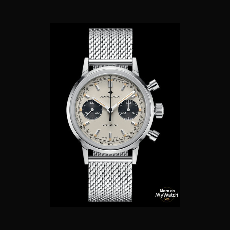 | More characteristics : | Movement H-51 mechanical chronograph movement with 60-hour power reserve Case Lug width: 20mm Dial Nickeled hour and minute hands with Super-LumiNova® Black lacquered central chronograph hand Bracelet Stainless steel mesh bracelet with folding clasp |