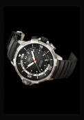 | + More characteristics : | Movement Calibre 30120 Frequency: 28.800 A/h / 4 Hz Jewels: 21 Power reserve: 42 h Features Mechanical external/internal rotating bezel with IWC SafeDive system Date display Central hacking seconds Mechanical depth gauge with split indicator showing maximum depth to 50 m Luminescent elements on hands. dial and internal rotating bezel Back engraving IWC bracelet quick-change system Titanium case Glass sapphire. convex. antireflective coating on both sides Black rubber strap Pin buckle in titanium |