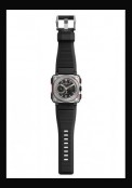 | + More characteristics : | Bell & Ross special movement Automatic mechanical Skeleton chronograph Functions : Hours. minutes et small secondes. Skeleton date at 6 o'oclock Chronograph with 60 seconde and 30 minute timers Case Titanium and ceramic with rubber inserts Toggle push-buttons Back with opening in tinted sapphire crystal. centred on the balance Dial Grey-tinted mineral glass Metal skeleton Superluminova filled hours and minutes hands. Applique metal indices with superluminova inserts Straps Woven black rubber Steel pin buckle with rubber insert |