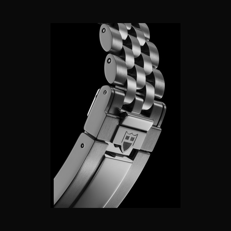 The Black Bay comes fitted with either an entirely satin- brushed three-link steel bracelet or a five-oval-shaped-link brushed and polished steel bracelet, both complete with the TUDOR “T-fit” clasp equipped with a system for rapid length adjustment. Easy to use, requiring no tools and offering five positions, this practical system allows wearers to carry out a fine, instant adjustment of the total length of the bracelet along an adjustment window of 8mm. The clasp features ceramic ball bearings that ensure a smooth and secure closure in addition to adding a pleasing tactile element to the action of the clasp.