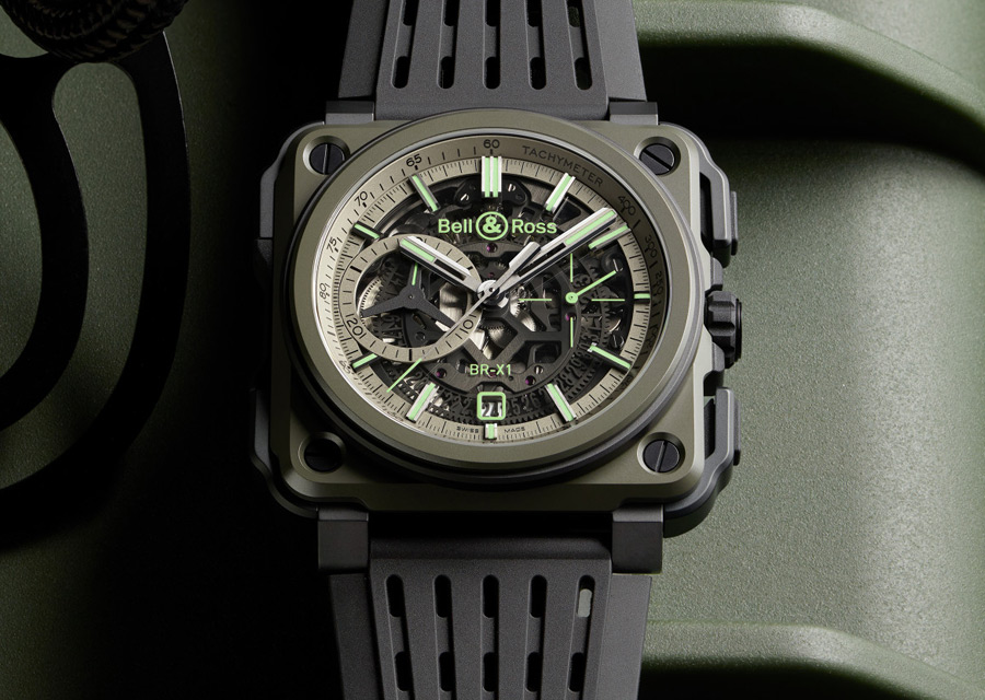 In a constant quest for technological innovations, especially when they come from the aeronautical and military fields, Bell & Ross has chosen to equip its BR-X1 chronograph with a lightweight and ultra-resistant case in khaki green HRT (High Resistant Titanium) to create the BR-X1 Military: a limited edition of 250 units, as beautiful as a stealth fighter plane and which also benefits from an ultra bright green display.
