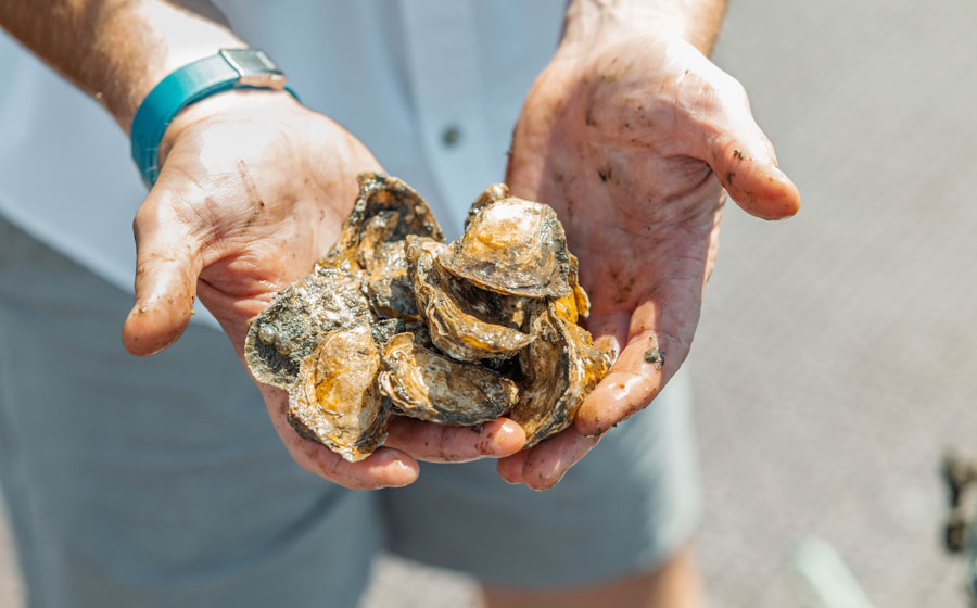 Oysters play a major ecological role. An adult oyster can filter up to 190 litres (50 gallons) of water a day, which helps purifying aquatic ecosystems. Besides, oyster reefs provide habitat for hundreds of marine species while forming natural barriers against storm damage, thus preventing erosion. Oyster reefs are to the ocean what trees are to the forest. Note that New York harbour was once home to 89,000 hectares (220,000 acres) of oyster reefs.