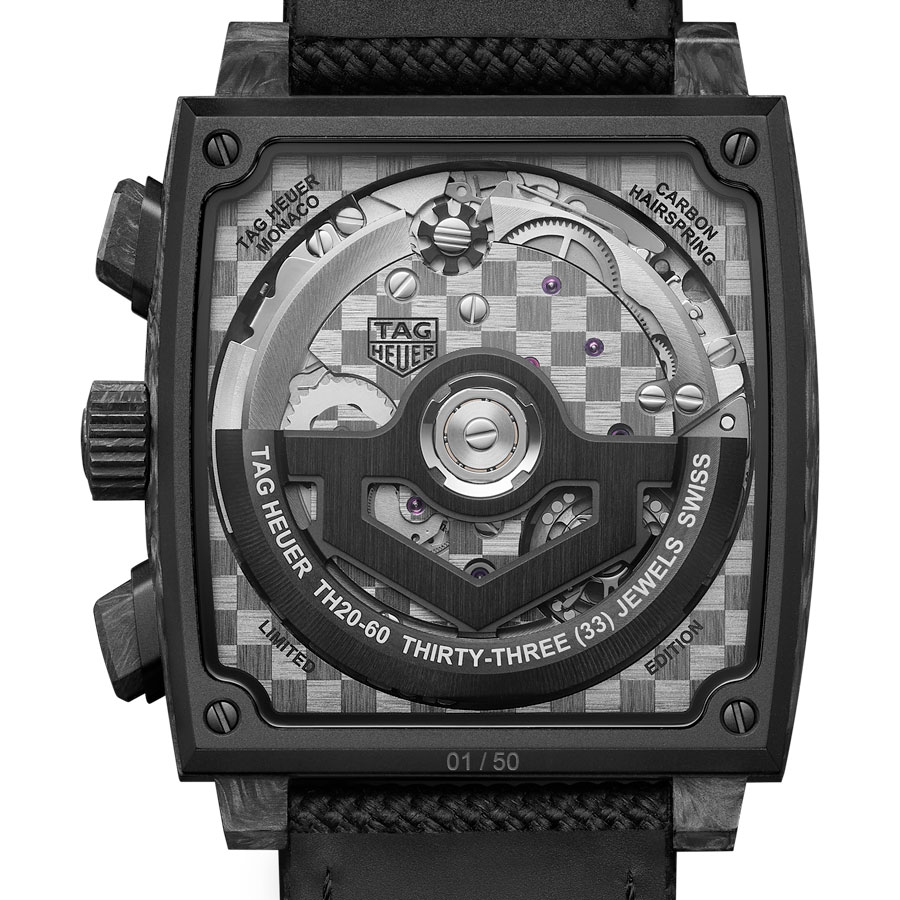 The manufacture chose 2 iconic models to launch this new technology: the Monaco edition and the Carrera edition, true symbols of its motor race legacy and its avant-garde spirit. Each edition is available as a limited edition of 50 copies. The TAG Heuer Monaco Flyback Chronograph TH-Carbonspring is recognisable by a case made of carbon fibre, a snail-looking spiral dial and an optimal legibility thanks to the hands coated in Super-LumiNova®. It is powered by the TH20-60 calibre, a flyback chronograph with a power reserve of 80 hours.