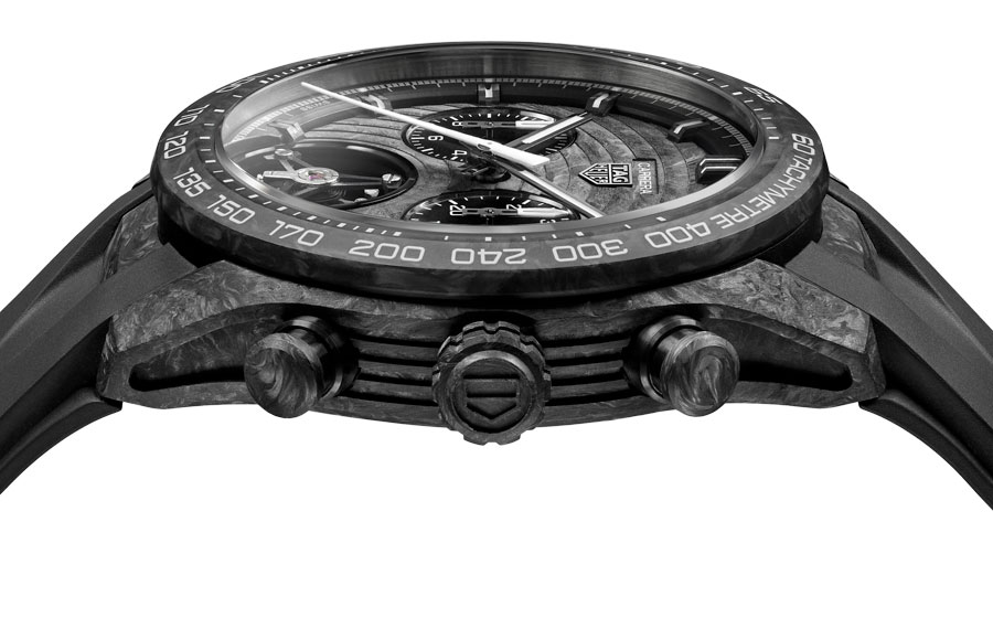 These 2 pieces remind the true savoir-faire of TAG Heuer – the use of carbon fibre, a light but sturdy material, shows its strong link with the motor race universe. Every detail was designed to reflect the brand’s DNA: innovation, accuracy and functional aesthetics.