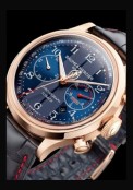 | + More characteristics : | Movement La Joux-Perret 8147-2 Circular-grained finished plate and bridges. Open worked oscillating weight adorned with 'Côtes de Genève'. snailed decor and PHI symbol. Blued steel screws Jewels: 27 Power reserve: 42 hours Frequency: 28’800 vph / 4 Hz Functions H/M/S. flyback chronograph. tachymeter scale. date Case Polished & satin-finished 18K red gold Scratch-resistant “chevé”-shape sapphire crystal. antiglare treatment Sapphire case back secured with 4 screws Engraving: “Shelby® Cobra Edition. xx/98”. Carroll Shelby signature on the sapphire crystal case back Dial Blue with two vertical stripes Arabic numerals. special gilt hands Superluminova (C1. blue emission) on hands and dial Strap Premium black alligator. blue alligator round scale lining. red stitching 18K red gold pin buckle Gold weight (minimum guarantee) : 65.56 gr |