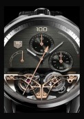 | More characteristics : | MOVEMENT 454 Components 75 Jewels Movement Dimensions Total Diameter: 35.8 mm (15 3/4’’’) Total Height: 9.82mm 2 tourbillon Pendulum: The Watch: 86’400 Vibrations per Hour/ 12 Hertz / 3 tourbillon rotations every minutes (71 components) Chronograph: 360’000 Vibrations per hour/ 50 HERTZ / 12 Tourbillon rotations every minute Power reserve Watch: 24 hours Chronograph: 60 minutes Automatic bi-directionnal rewinding system CASE Sandblasted. fine brushed and polished Chrome-Cobalt Polished titanium grade 5 push buttons DIAL Chronograph minutes counter at 12 o'clock Chronograph second counter at 3 o'clock Chronograph power reserve percentage indicator at 9 o'clock 2 Pendulum Tourbillon with solid rose gold bridges visible at 6 o’clock Hand applied solid rose gold “100” at 12 o'clock Hand applied Tag Heuer logo engraved MikroPendulumS lettering |