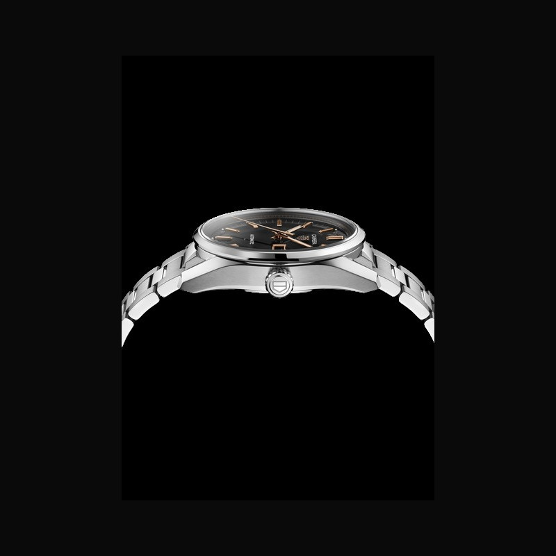 The dials give each piece of the collection its own unique personality. The signature TAG Heuer Carrera blue model features a sunray-brushed finish that exudes classic elegance, while the smokey red opaline dial adds a sophisticated, more modern touch. For those who favor understated refinement, the black opaline dial is an elegant choice offered in steel bracelet and an alternative steel and 18K 5N rose gold fine brushed bracelet configuration. Adding further versatility, the collection includes a black grained dial model, distinguished by its striking red lacquered central hand and vivid touches of blue on the dial, bringing sporty and dynamic elements. Carefully chosen details such as rhodium-plated or 18K 5N rose gold plated hands and indexes elevate the aesthetics.