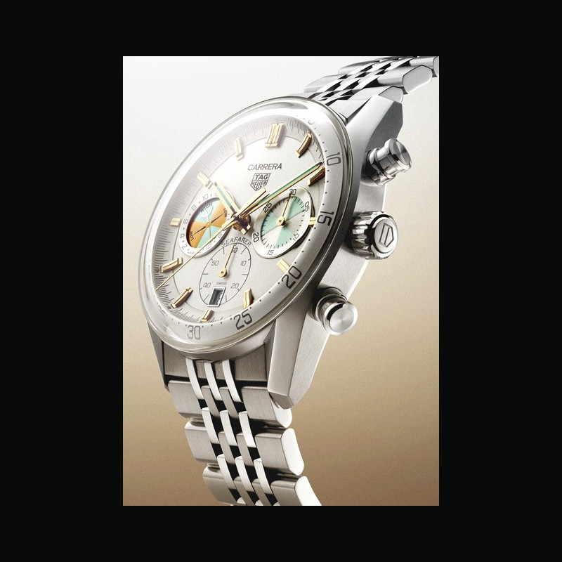 Introduced in 2025, this new version of the bracelet that became synonymous with earlier versions of the Carrera combines brushed and polished links and has been specifically developed to enhance the heritage vibe of the glassbox models.