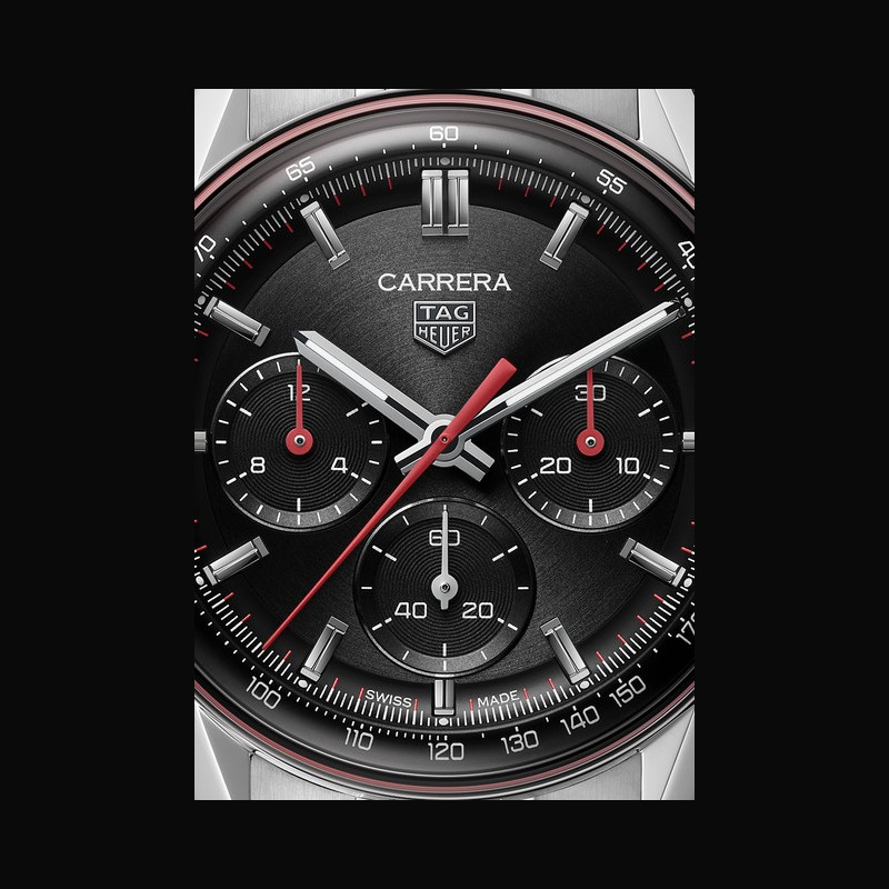 Over decades, the TAG Heuer Carrera evolved into a symbol of performance and style, appearing on the wrists of racing enthusiasts, watch fans, and members of the horology community around the world. In 2023, TAG Heuer revived the TAG Heuer Carrera’s iconic glassbox design for its 60th anniversary, marrying the curved sapphire crystal and flowing flange with refined finishing, advanced movement technology, and a renewed focus on clarity and elegance. These 2023 iterations introduced new expressions of the design, paving the way for today’s complementary TAG Heuer Carrera Chronograph in 41mm. It is a contemporary companion to the TAG Heuer Carrera Chronograph 39mm, the heritage-inspired model designed for connoisseurs. This new timepiece brings a fresh presence to the collection, extending the glassbox legacy and opening a new dimension to the TAG Heuer Carrera family.