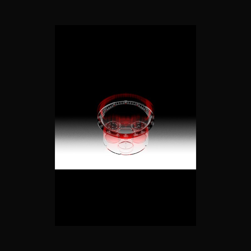 | Display : | Anthracite translucent acrylic glass flange 3 counters: - 3 o’clock: anthracite translucent sapphire glass minute chronograph applied counter; red lacquered hand; red and white markings - 9 o’clock: anthracite translucent sapphire glass hour chronograph applied counter; red lacquered hand; red and white markings - 6 o’clock: translucent sapphire glass dial permanent second indicator; rhodium plated fine brushed hand; white markings Fine brushed; polished rhodium plated curved applied indexes with white Super-LumiNova® Fine brushed open-worked hour and minute hands with white Super-LumiNova® White lacquered central hand Red lacquered open worked split-seconds hand Rhodium plated polished TAG HEUER applied logo “CARRERA”; “SWISS”; “MADE” printed |
