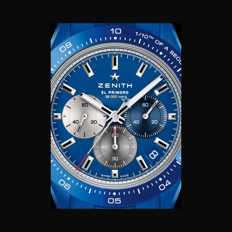 Durable, lightweight, soft to the touch, highly scratch-resistant, and biocompatible, ceramic is an exceptional yet demanding material. It can be produced in a vast array of colours and, unlike metals that rely on surface coatings, it is integrally coloured, which contributes to its unique sheen and depth. While producing black and white ceramic is relatively straightforward, creating a new and specific shade, such as the ZENITH’s blue, is a delicate and complex endeavor requiring months of development. Shaping and finishing ceramic components is equally challenging, demanding advanced techniques. Despite these complexities, ZENITH takes pride in finishing its ceramic watches with the same meticulous attention to detail as its gold or steel timepieces.
