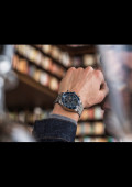 | Display : | Bezel: stainless steel with black ceramic insert and 18 k red gold elements unidirectional ratcheted Indexes and Super-LumiNova® coated rider tab numerals Super-LumiNova® luminescent indexes and hands |