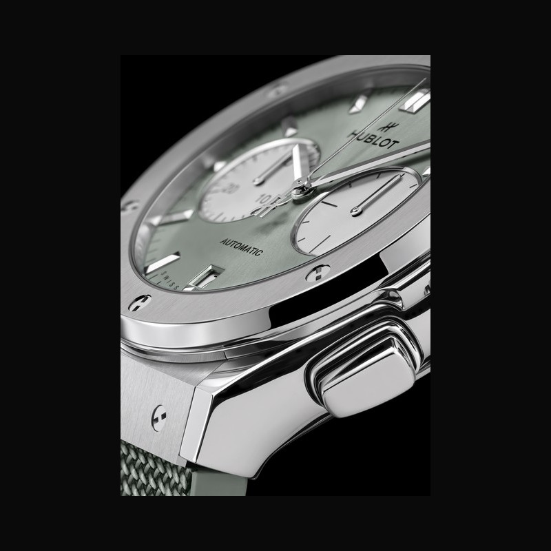 Hublot has been charting the course of the times since 1980, vibrating in harmony with trends. Today, the Nyon-based Manufacture prides itself on its youthfulness, its irreverence and its creative freedom. And nothing illustrates this more clearly than the latest Sage Green Classic Fusion watches. Hublot embraces the most on-trend color of the moment: a pastel sage green that is fresh, elegant and harmonious.