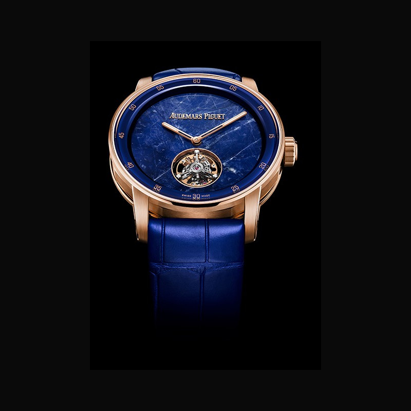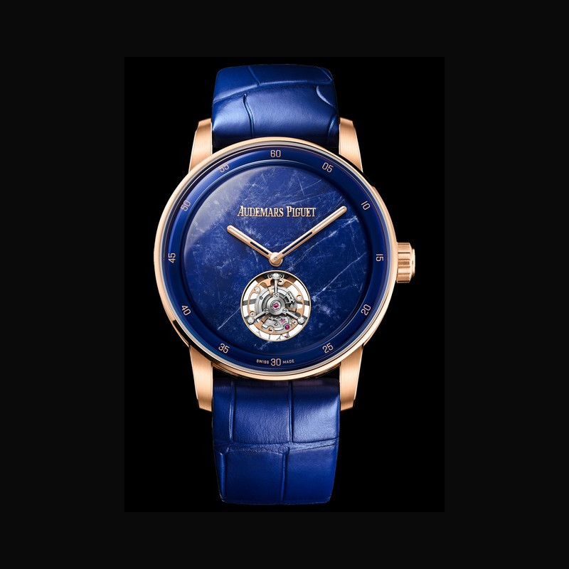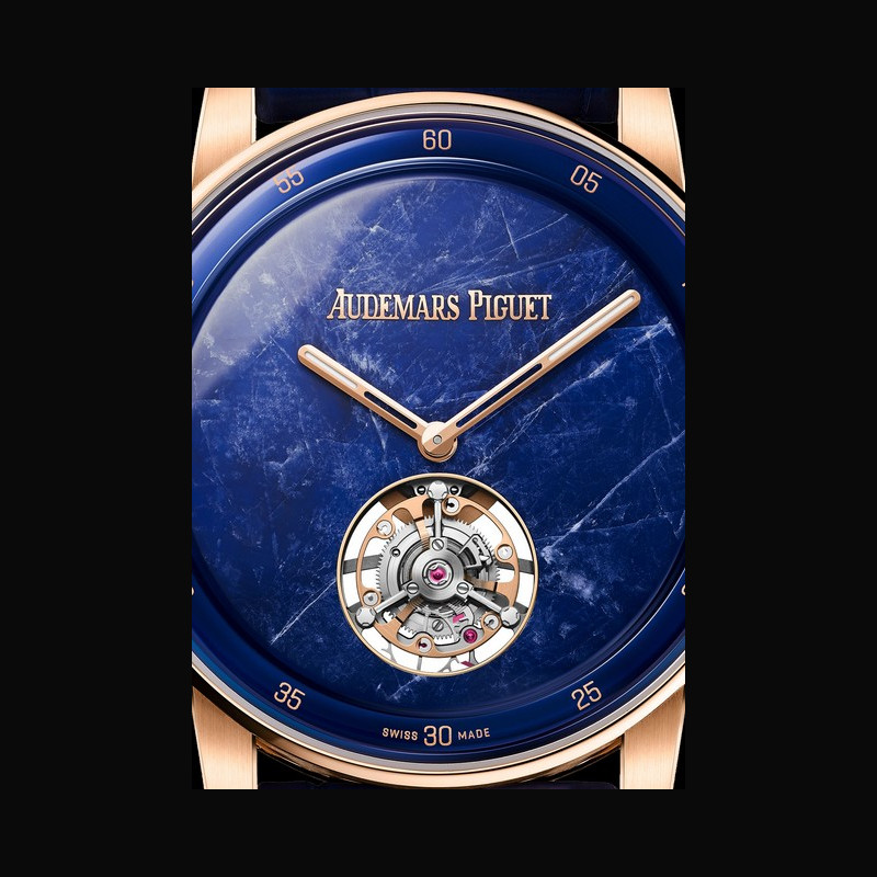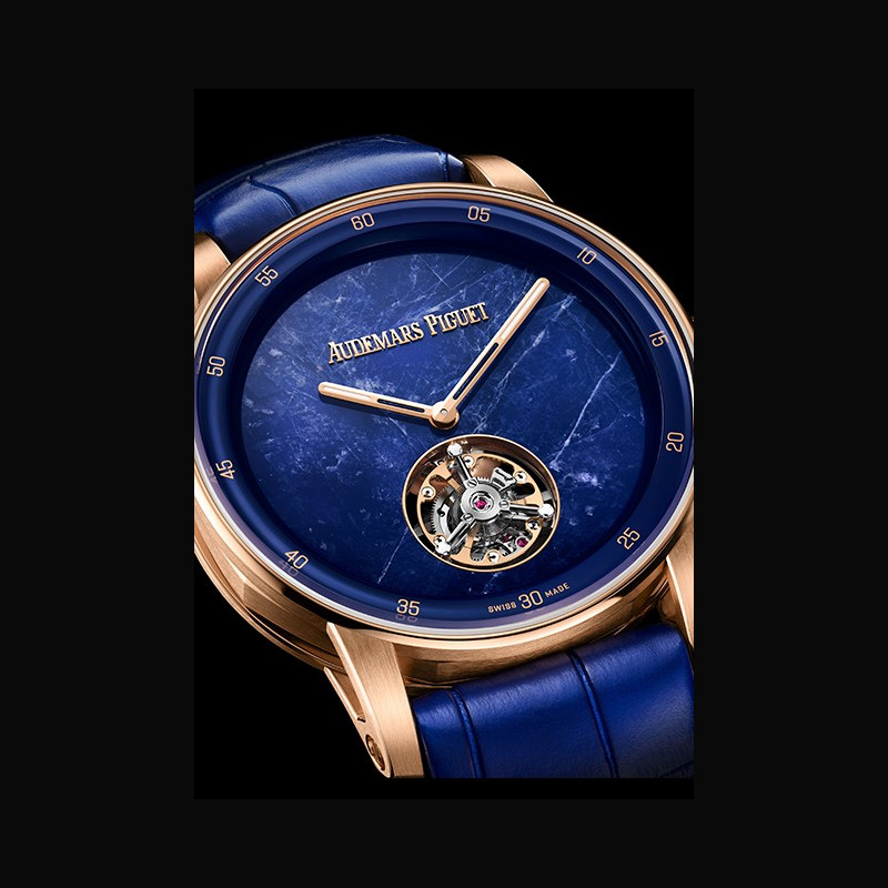 Audemars Piguet began exploring the aesthetic potential of natural stone dials in the 1960s. Requiring exceptional manual skills, each dial is crafted from a wafer-thin layer of stone, painstakingly cut and polished to preserve its integrity while revealing its natural brilliance. The tonal variations, veining and textural richness inherent to each stone ensure that no two dials are alike. Beyond their rarity and physical beauty, precious stones have long been imbued with symbolic meanings that resonate with different facets of the human experience. They are also believed to hold unique energetic properties that support emotional balance, wellbeing and empowerment. For this exclusive trio, Audemars Piguet has carefully sourced the precious stones from around the world: vivid ruby root from Tanzania, associated with vitality and protection; deep blue sodalite from Brazil, linked to calm and clarity; and rich green malachite from Zambia, said to support growth and transformation. For many, these materials are more than decorative – they carry emotional weight, making each timepiece a talisman as much as a mechanical marvel.