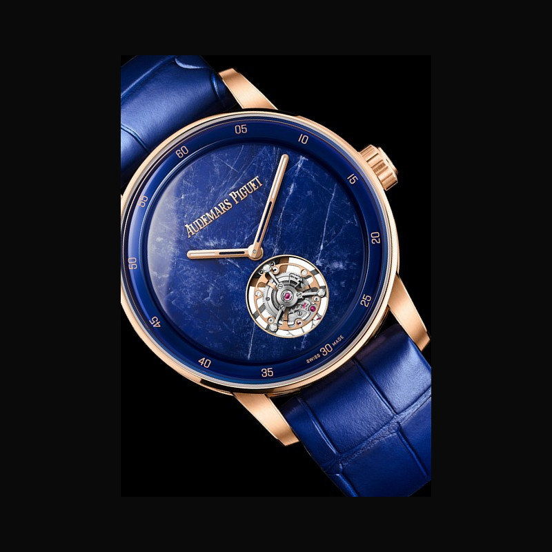 At the heart of these new creations beats Calibre 2968 – the Manufacture’s selfwinding flying tourbillon movement designed specifically for watches under 41 mm. First introduced in 2022 on the Royal Oak RD#3 (first in 39 mm then in 37mm), this ultra-thin calibre made its debut in the Code 11.59 by Audemars Piguet collection earlier this year in 38 mm. Measuring only 3.4 mm in thickness, this high-end complication has been rethought and redesigned to reduce its width while retaining the initial proportions of its cage. For the first time, the titanium tourbillon cage is equipped with a peripheral drive, minimising weight while a high-amplitude escapement enhances reliability, energy distribution and precision. Unlike a traditional tourbillon, the flying tourbillon cage is supported only from below, giving it a graceful, floating appearance above the dial’s natural stone backdrop. Drawing on generations of expertise, the 38 mm Code 11.59 by Audemars Piguet Selfwinding Flying Tourbillon timepiece sets a new standard for miniaturisation, demonstrating that technical savoir-faire and ergonomic elegance are not mutually exclusive, but rather two sides of the same coin. With its refined architecture, the 38 mm case embodies both technical mastery and artistic intention, offering a powerful horological experience in a beautifully proportioned form.