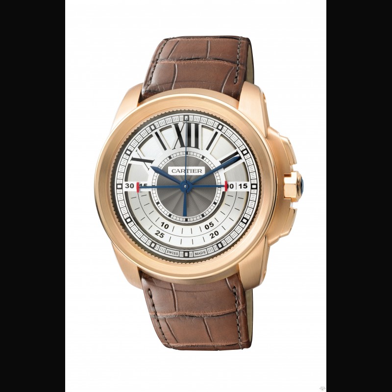 The Calibre de Cartier watch embodies new masculine asethetics and now incorporates a column-wheel, vertical-clutch Chronograph. The unique characteristics of this movement add a sporting touch to this watch full of character. Its bezel dropping down steeply to the dial, its imposing Roman XII numeral – a modern reinterpretation of one of the fundamental codes of Cartier watchmaking – and its grained and snailed finishes arranged in a semi-circle give this watch a strong personnality and enhance this new signature piece of Cartier watchmaking.