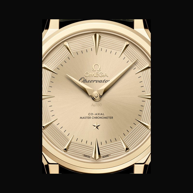 The OMEGA Constellation Observatory Collection reinterprets OMEGA’s defining aesthetic codes. The design language traces to the 1948 Centenary, which laid the foundation for the Constellation. The dodecagonal pie-pan dial followed shortly after the launch of the first Constellation, with the Constellation Star at 6 o’clock and the Observatory medallion on the caseback. The guilloché finish appears on the facets of the pie-pan, a detail established with the early Grand Luxe models. The faceted kite-form indexes and dauphine hands draw on earlier Constellation models. The dog-leg lugs distinguished OMEGA models of the era. The nine-row brick pattern on the 18K Moonshine™ Gold mesh bracelet draws on vintage brick bracelets of the Constellation’s formative years.