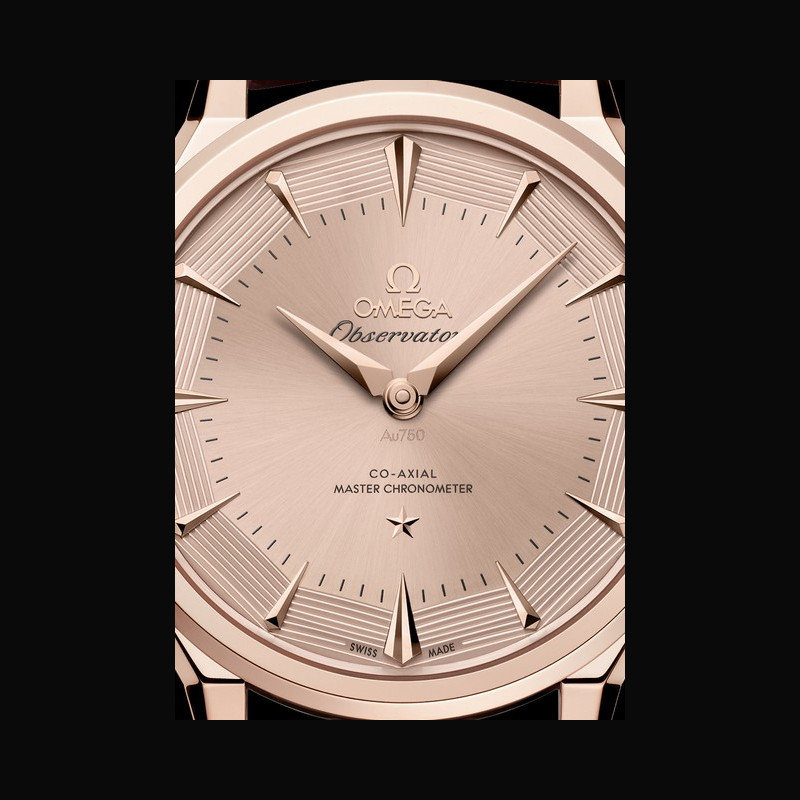 The OMEGA Constellation Observatory Collection reinterprets OMEGA’s defining aesthetic codes. The design language traces to the 1948 Centenary, which laid the foundation for the Constellation. The dodecagonal pie-pan dial followed shortly after the launch of the first Constellation, with the Constellation Star at 6 o’clock and the Observatory medallion on the caseback. The guilloché finish appears on the facets of the pie-pan, a detail established with the early Grand Luxe models. The faceted kite-form indexes and dauphine hands draw on earlier Constellation models. The dog-leg lugs distinguished OMEGA models of the era. The nine-row brick pattern on the 18K Moonshine™ Gold mesh bracelet draws on vintage brick bracelets of the Constellation’s formative years.