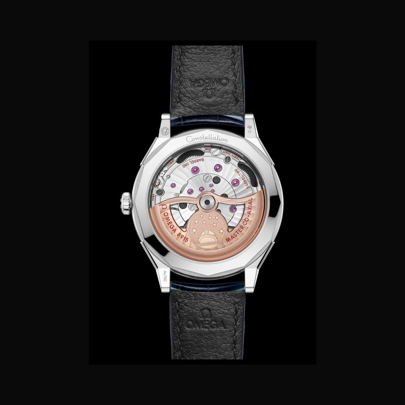 Calibre 8915 Luxe movements are designed for the 18K gold collection, including the first use of an 18K Moonshine™ Gold rotor and balance bridge in OMEGA’s history, in addition to the usual 18K Sedna™ Gold. The rotor base bears the Geneva waves in arabesque with horizontally brushed outer zone. The medallion is in 18K corresponding gold with laser-ablated elements, contrasting mat and polished finishes.