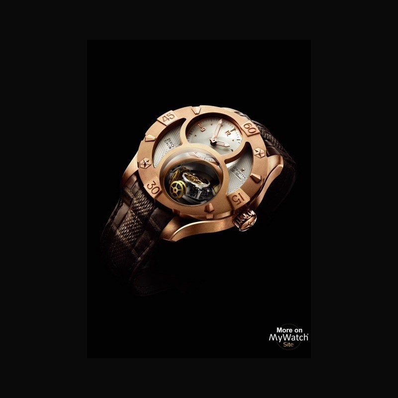 | More characteristics : | Exclusive Numbered Edition Movement 45 jewels Frequency : 36 000 vibrations per hour 50 hours power reserve Gyroscopic cage 166 components 10 conical-geared wheels (with 6 spherical wheels) & 6 ball bearings Automatic winding in both directions |