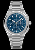 | More characteristics : | Movement El Primero 3600 automatic Frequency: 36’000 VpH – 5Hz Power reserve: approx. 60 hours Case Stainless Steel Dial Blue-toned sunray-patterned Bracelet / Buckles Stainless steel bracelet. 2nd bracelet included: blue rubber with stainless steel folding clasp |