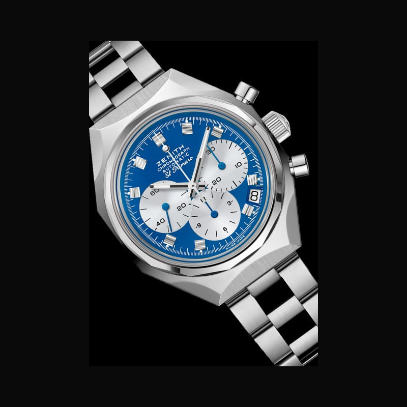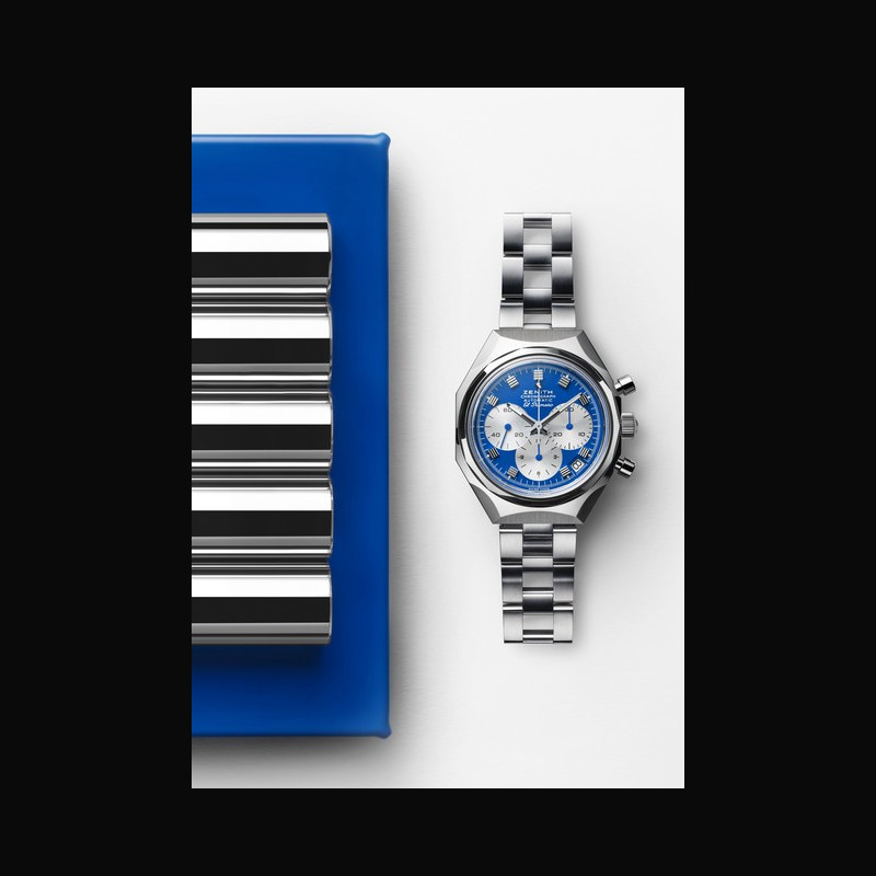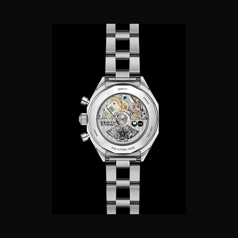 The DEFY Chronograph USM is housed in a compact 37.3 mm stainless steel case that stays true to the bold geometry of the original DEFY. Its octagonal shape is accentuated by a 14-sided bezel, while pump-style chronograph pushers enhance its vintage-inspired silhouette. The watch is paired with the iconic “ladder” bracelet, originally designed in 1969 by the renowned Gay Frères company exclusively for ZENITH. Water resistance is rated at 10 ATM, ensuring robustness to match its design integrity.