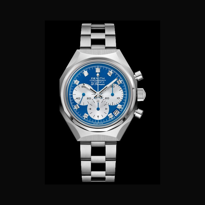 + More characteristics : | Movement Movement: El Primero 400 Frequency: 36,000 VpH (5 Hz) Power reserve: 55 hours Case Stainless Steel Dial USM Gentian Blue Bracelet / Buckles Stainless steel “ladder” bracelet |