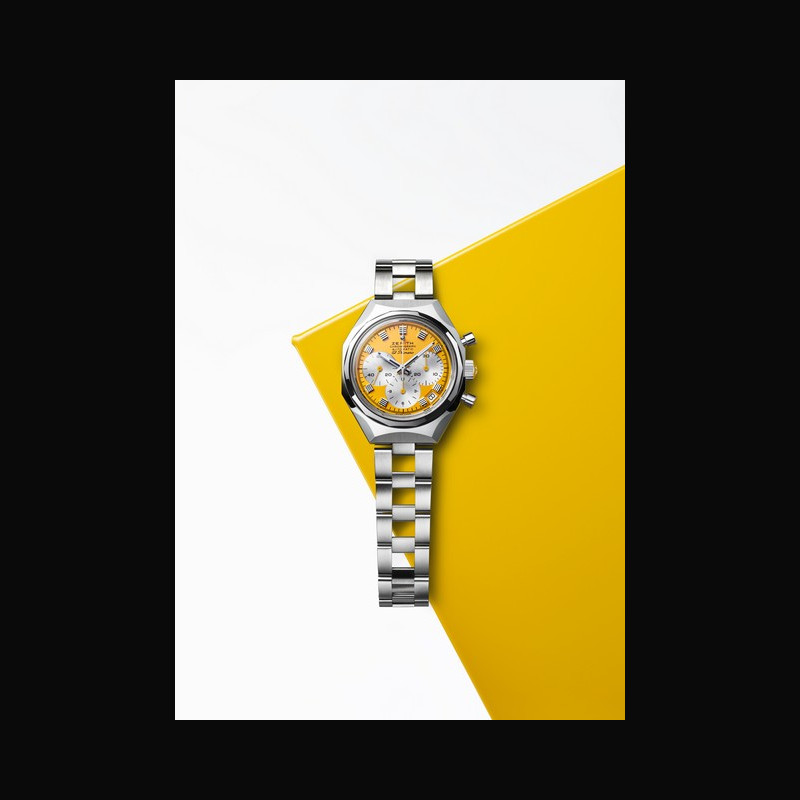 The DEFY Chronograph USM is housed in a compact 37.3 mm stainless steel case that stays true to the bold geometry of the original DEFY. Its octagonal shape is accentuated by a 14-sided bezel, while pump-style chronograph pushers enhance its vintage-inspired silhouette. The watch is paired with the iconic “ladder” bracelet, originally designed in 1969 by the renowned Gay Frères company exclusively for ZENITH. Water resistance is rated at 10 ATM, ensuring robustness to match its design integrity.