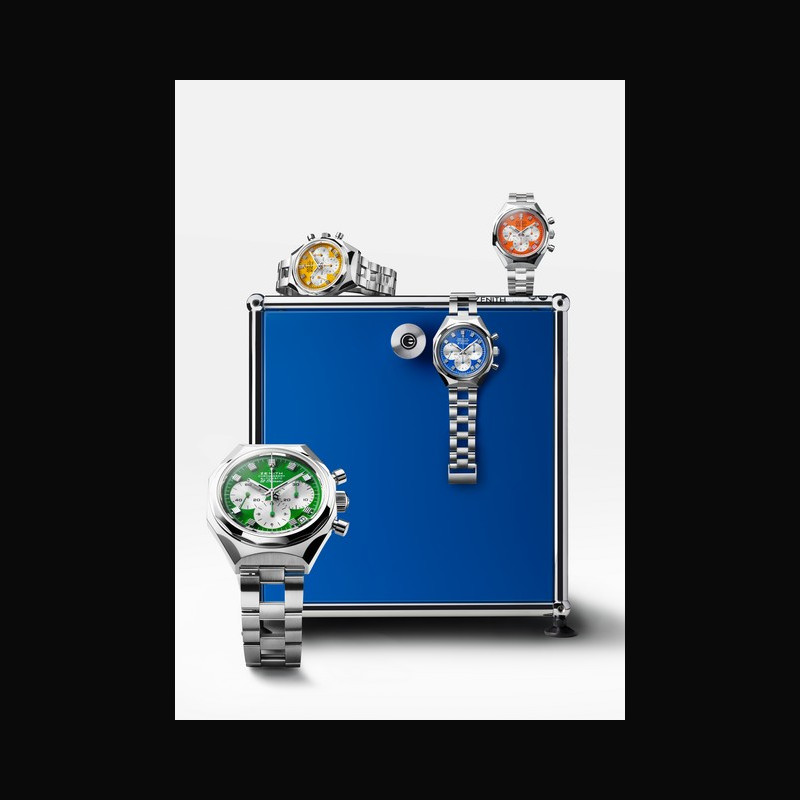 A subtle yet playful detail: the chronograph second hand is tipped with a miniature USM Haller ball joint, filled with SuperLuminova for visibility in low light. When the chronograph is activated, it reveals the ZENITH star cleverly hidden beneath, a nod to the intricate storytelling woven into the piece. Each dial colour is produced in a limited edition of 60 pieces.