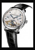 | More characteristics : | 30 ° inclined Double Tourbillon Outer Tourbillon 4-minute rotation indicator Inner Tourbillon 60-second rotation indicator Movement 301 parts 2 Tourbillon cages : 128 parts Weight of the two cages : 1.17 g 39 jewels Olive-domed jewels in gold chatons Power reserve : 72 hours Frequency : 21 600 vibrations/hour Rapid rotating twin barrels one of which equipped with a slipping spring so as to avoid excess tension Balance wheel free sprung balance with white gold mean-time screws Main Plates in nickel silver with fine circular graining centred around the Tourbillon. finished in “jade gold” Bridges Hand-Frosted nickel silver. finished in «jade gold» Involute circle profile Conical gearing with corrected profile Inner Tourbillon Outer Tourbillon Raised polished engraving of the name of the Invention on a hand-punched background Gold security screws Spiral of infinity hand-engraved around the periphery of the caseThree-dimensional lugs secured Hand-engraved individual number Hand-sewn strap Folding clasp engraved with the Greubel Forsey logo |