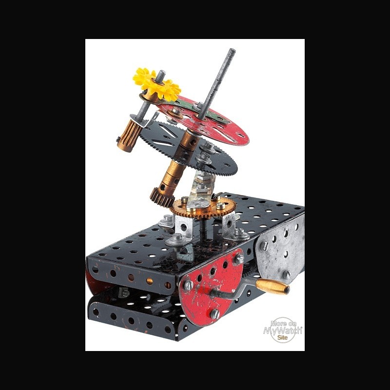 A conical gearing, composed of a wheel and a pinion, with profiled teeth specifically made for the Double Tourbillon 30°, was chosen so as to enable an improved power transmission, superior to that of classical solutions.