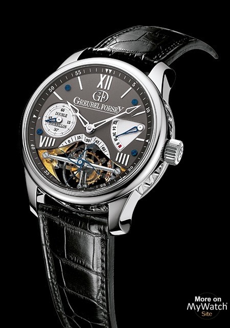 The solid gold two-part dial gives a sense of depth to the precious metals and highlights the various watch functions. The silvered or black gold dial is held by four security screws in polished, flame-blued steel. The power-reserve is displayed on an off-centred sub-dial at 3 o’clock. Visually representing the rotation of the inner cage of the Double Tourbillon 30°, the small seconds appear on a small dial at 9 o’clock, complete with Double Tourbillon inscription. The rich and yet understated appearance of this dial expresses the technical sophistication and beauty of contemporary haute horlogerie according to Greubel Forsey.