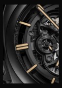 | + More characteristics : | Movement Skeleton hand-wound mechanical. Panerai P.2005/S calibre. executed entirely by Panerai 16¼ lignes 10.05 mm thick 31 jewels Glucydur® balance 28.800 alternations/hour KIF Parechoc® anti-shock device Power reserve: 6 days 3 barrels 277 components Functions Hours. minutes. small seconds. second time zone. 24h indicator. power reserve indicator on the back. tourbillon Case Black ceramic Bezel: Black ceramic Crystal: Sapphire. made of corundum. 2 mm thick. Double anti-reflective coating Watch chain PANERAI personalized watch chain in black ceramic |