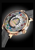 | + More characteristics : | Movement LV235 calibre: mechanical movement with manual winding developed and assembled at the La Fabrique du Temps Louis Vuitton Manufacture Function: worldtime displayed by discs and minute repetition 38.9mm in diameter 9.01mm thick 447 components 100-hour power reserve 21.600 oscillations per hour 31 rubies Case Case in 18-ct pink gold (bezel. horns and crown) and titanium (middle) Dial City disc hand painted by a craftsman at the La Fabrique du Temps Louis Vuitton Manufacture Strap Grey alligator with yellow lining Folding buckle in 18-ct pink gold |