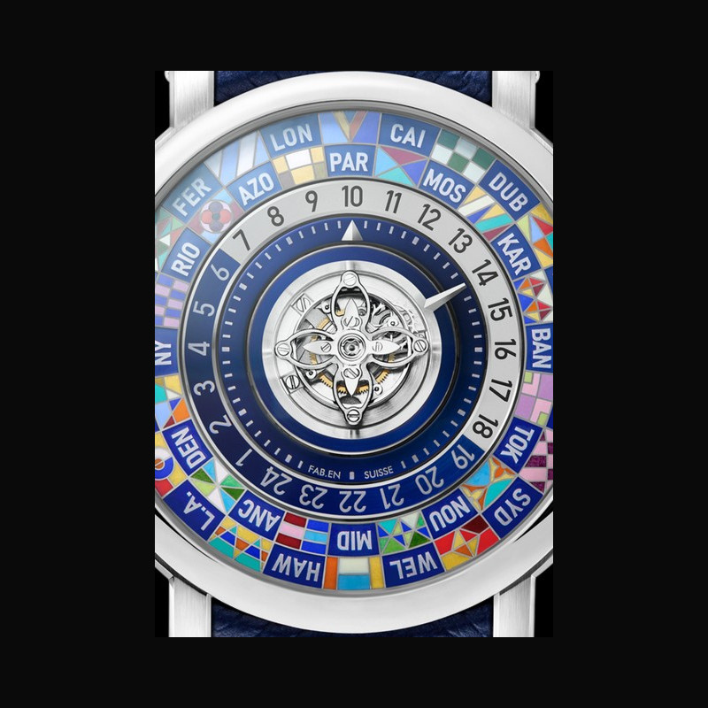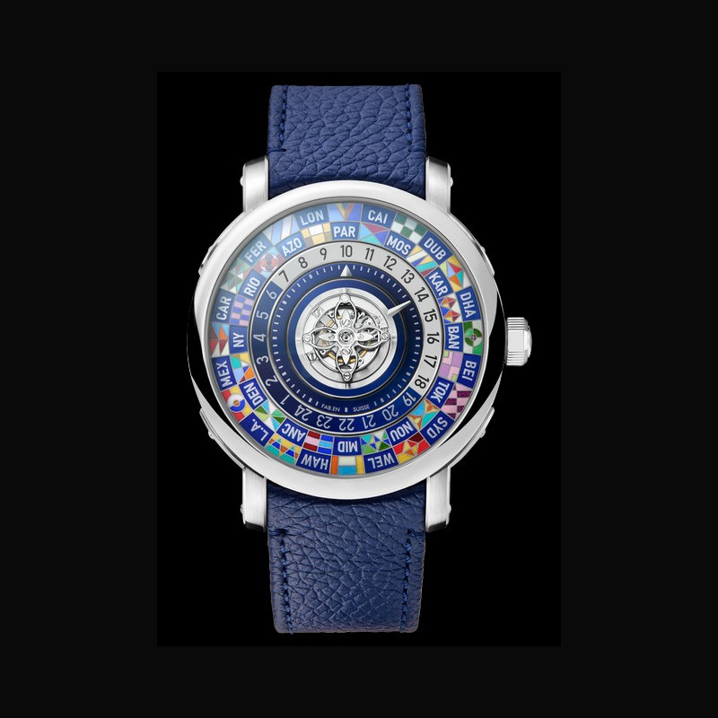 | Complication : | Worldtime Day/night indication for 24 time zones Central flying tourbillon Jumping hours and minutes |