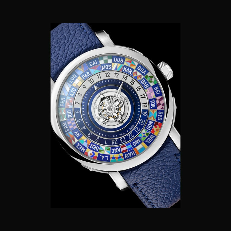 | Display : | 18K white gold minute indicator 18K white gold reference time zone indicator |