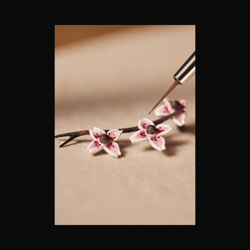 Placed in the foreground in front of Mount Fuji, the Sakura are discreet in their composition, which is no easy feat to achieve. Set in yellow gold, they require precise control during firing: any overcooking can cause oxidation, altering the tones of the enamel. Hence, each step was carefully mapped out in advance, with particular attention paid to the stability of the colors and refinement of the finish.