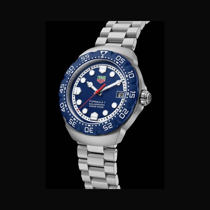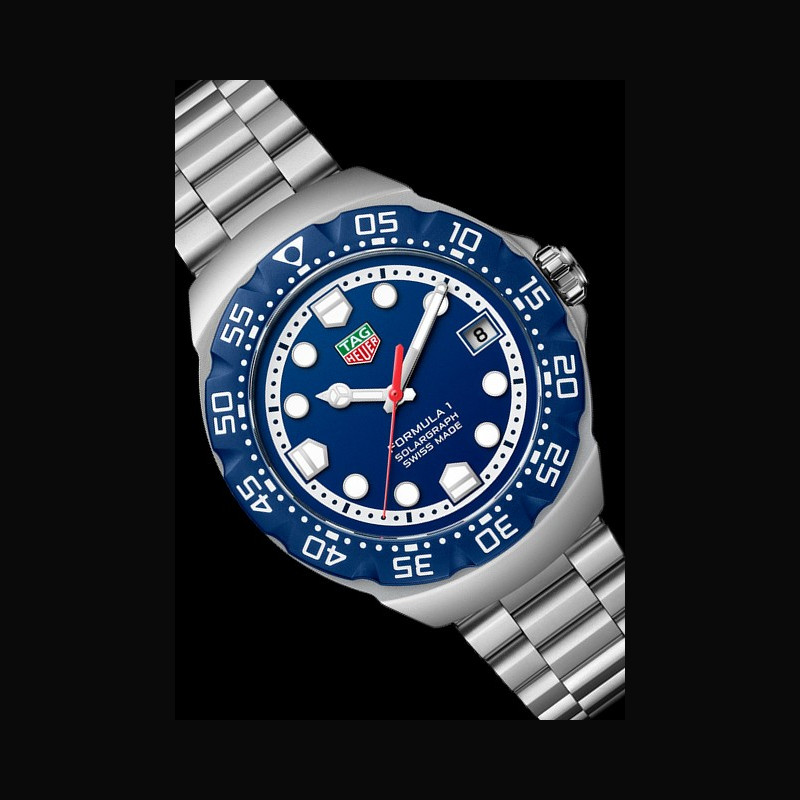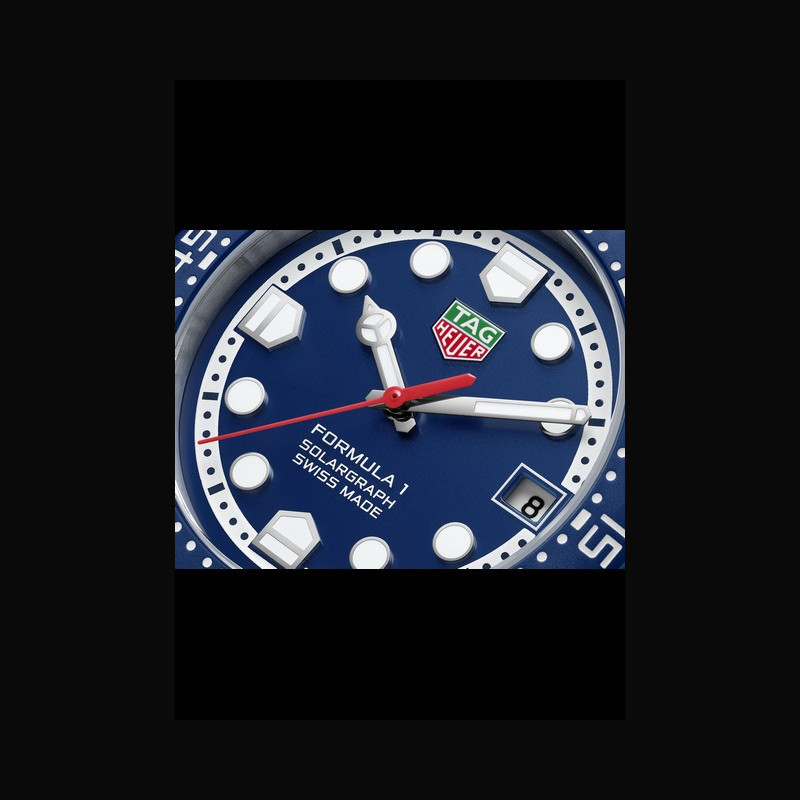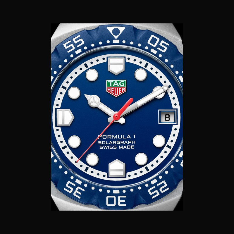 Evolving from the original 35mm models, the 38mm version retains the distinctive “décroché”, a hallmark of the design that enhances the watch’s elegance, delivering the perfect balance between sportiness and everyday wear, and designed to fit a variety of wrist sizes. Ergonomic refinements make these watches exceptionally comfortable, while still maintaining the bold and unmistakable presence TAG Heuer Formula 1 is known for. Super-LumiNova® treated indexes – a reinterpretation of the original shield-shaped markers – now appear in an applied format, elevating the watch’s appearance. In addition, the hands, inspired by the original design, have been reworked with elevated finishings and improved proportions to reinforce the watch’s premium character. This