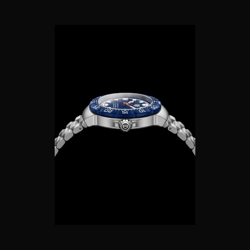 | + More characteristics : | Movement Caliber TH50-00 Case Steel Sandblasted case Lug-to-lug: 45,2 mm Dial Bue opalin dial Bracelet / Buckles Steel 3 rows bracelet sandblasted Steel folding clasp with double safety push-buttons with adjustment link extension; TAG Heuer engraving Worldwide Availability 01.04.2025 |