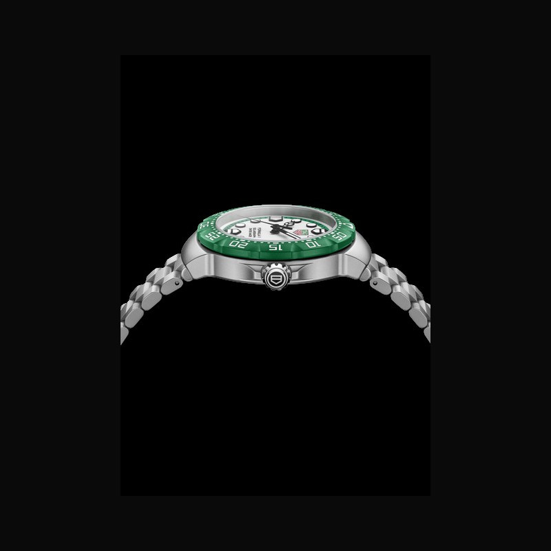 Evolving from the original 35mm models, the 38mm version retains the distinctive “décroché”, a hallmark of the design that enhances the watch’s elegance, delivering the perfect balance between sportiness and everyday wear, and designed to fit a variety of wrist sizes. Ergonomic refinements make these watches exceptionally comfortable, while still maintaining the bold and unmistakable presence TAG Heuer Formula 1 is known for. Super-LumiNova® treated indexes – a reinterpretation of the original shield-shaped markers – now appear in an applied format, elevating the watch’s appearance. In addition, the hands, inspired by the original design, have been reworked with elevated finishings and improved proportions to reinforce the watch’s premium character. This