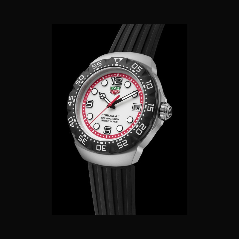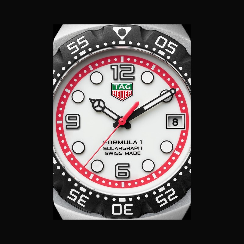 At the heart of the sandblasted steel cases with a DLC treatment or the TH-Polylight cases of this release is the Solargraph movement, a first for the TAG Heuer Formula 1 lineup. TAG Heuer’s