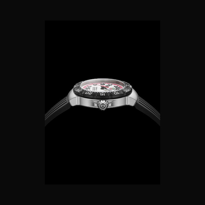 Beyond the movement, the introduction of TH-Polylight, a new material for TAG Heuer known for its light weight, durable, limitless color possibilities, and its ability to optimize both ergonomics and aesthetics, marks another milestone in TAG Heuer’s commitment to innovation. The re-engineered bidirectional bezel – in its iconic shape beloved by TAG Heuer Formula 1 fans – is crafted from TH- Polylight. The sensory experience has been reworked, producing a refined mechanical sound when rotated – adding a touch of sophisticated tactility.