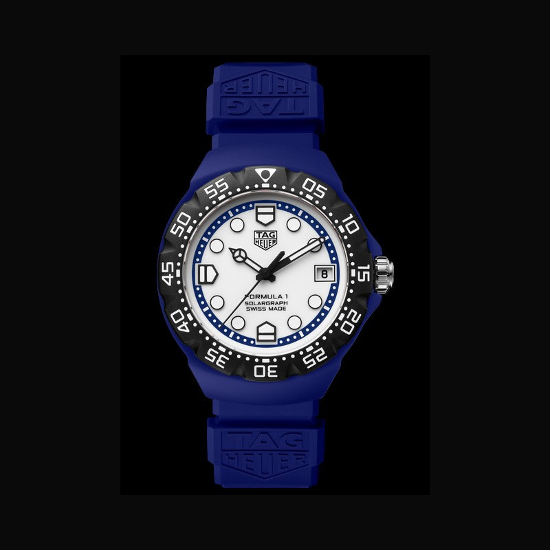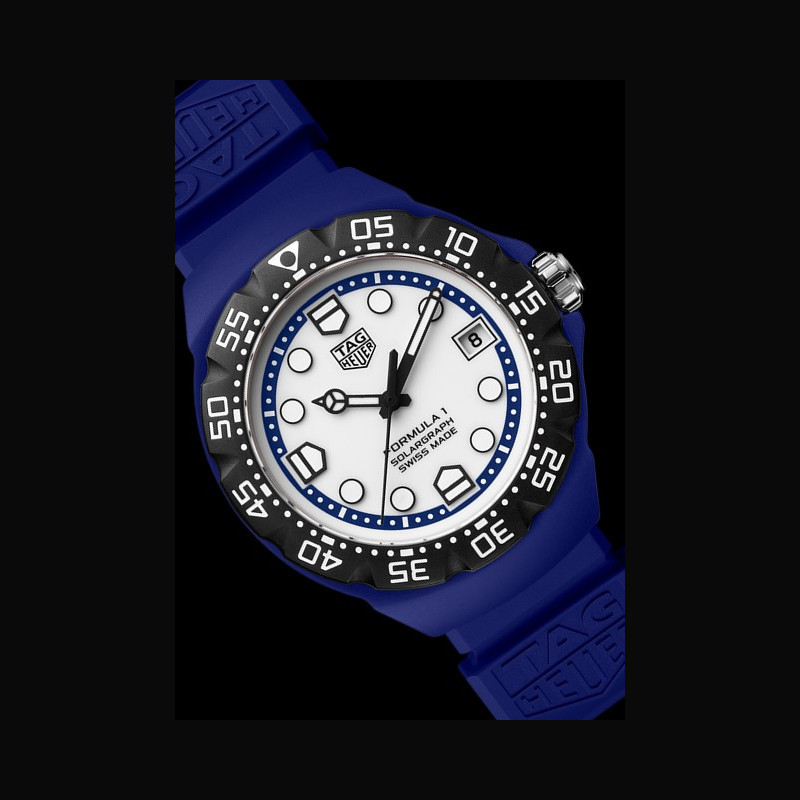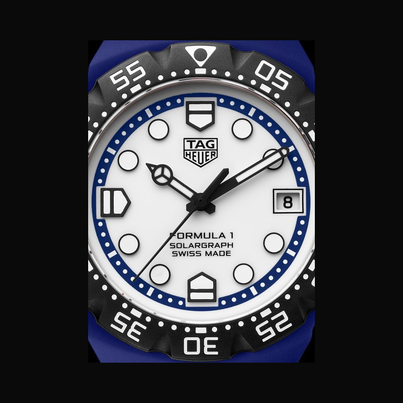 At the heart of the sandblasted steel cases with a DLC treatment or the TH-Polylight cases of this release is the Solargraph movement, a first for the TAG Heuer Formula 1 lineup. TAG Heuer’s