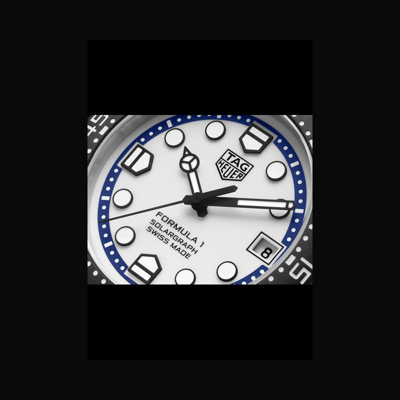 Evolving from the original 35mm models, the 38mm version retains the distinctive “décroché”, a hallmark of the design that enhances the watch’s elegance, delivering the perfect balance between sportiness and everyday wear, and designed to fit a variety of wrist sizes. Ergonomic refinements make these watches exceptionally comfortable, while still maintaining the bold and unmistakable presence TAG Heuer Formula 1 is known for. Super-LumiNova® treated indexes – a reinterpretation of the original shield-shaped markers – now appear in an applied format, elevating the watch’s appearance. In addition, the hands, inspired by the original design, have been reworked with elevated finishings and improved proportions to reinforce the watch’s premium character. This