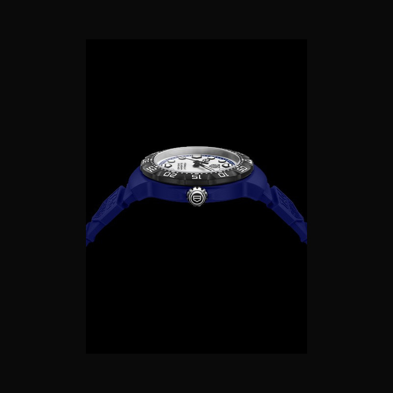 Beyond the movement, the introduction of TH-Polylight, a new material for TAG Heuer known for its light weight, durable, limitless color possibilities, and its ability to optimize both ergonomics and aesthetics, marks another milestone in TAG Heuer’s commitment to innovation. The re-engineered bidirectional bezel – in its iconic shape beloved by TAG Heuer Formula 1 fans – is crafted from TH- Polylight. The sensory experience has been reworked, producing a refined mechanical sound when rotated – adding a touch of sophisticated tactility.